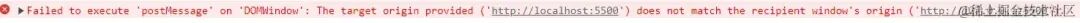(示例图:源不匹配导致的 postMessage 错误)
